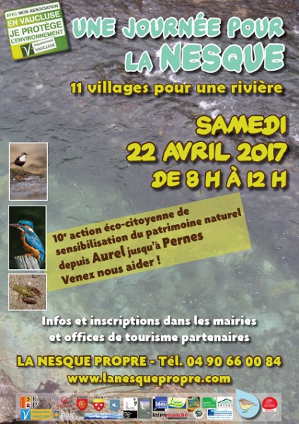 Soleil ou pas, toute l’équipe sera heureuse d'échanger avec anciens ou nouveaux bénévoles un pur moment de convivialité et de partage pour cette rivière si chère à Pernes : la première ville à en être traversée depuis sa source. Vraiment, une occasion de rencontrer les amoureux de la Nesque , de l'amont en aval, à ne pas manquer !