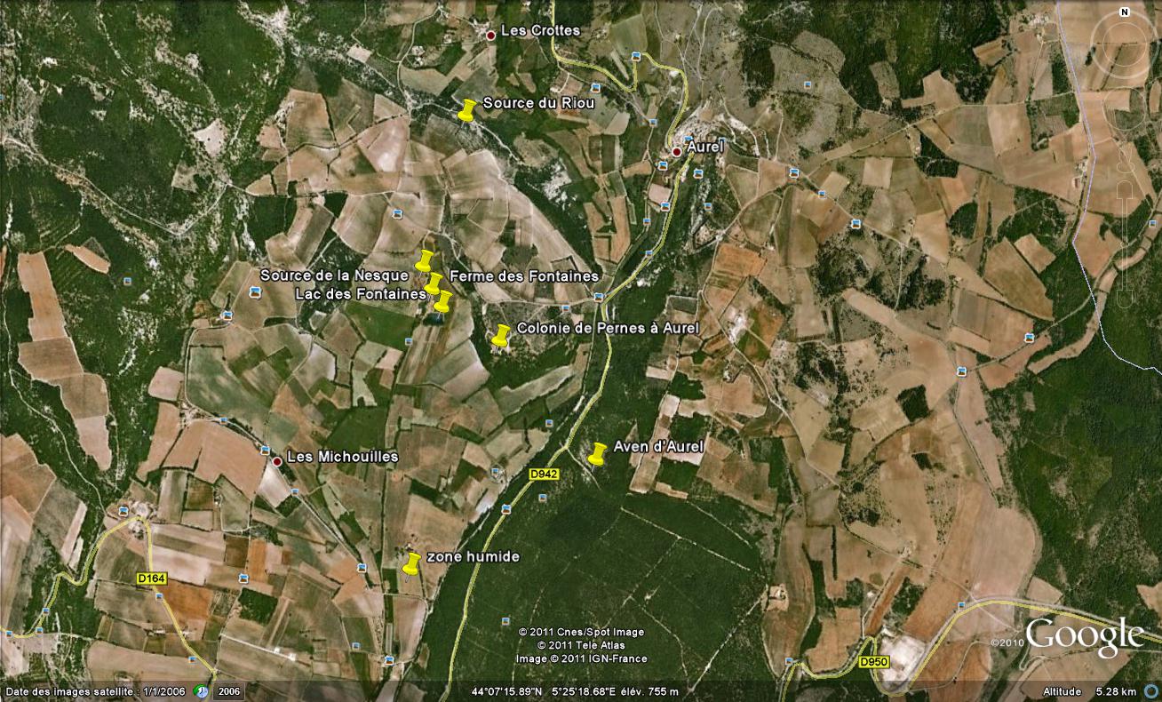 Effectivement il y a plusieurs sources , mais la source officielle et principale se situe à 50 mètres au dessus de l'ancien moulin à blé et de l'ancienne distillerie de lavande de la ferme des fontaines à Aurel. Pour cela vous devez prendre le chemin communal qui conduit à la ferme des fontaines depuis le château de Coudray, colonie de Pernes à Aurel.