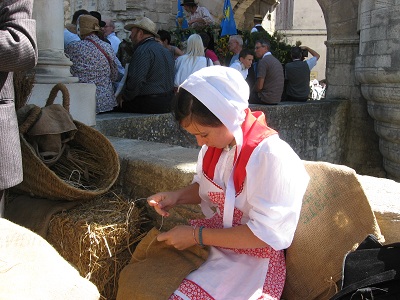 A l'occasion de la 9ém Fête du Patrimoine de Pernes les fontaines,La Nesque Propre vous a accueillis sur le parvis du pont Notre dame à Pernes les fontaines, au coeur du centre ancien, au milieu des bottes de paille, pour vous faire découvrir le travail du " Ravaudeur ou Ravaudeuse qui consistait à " Pédasser", les sacs de grains de blé, de farine mais aussi les bouras.....