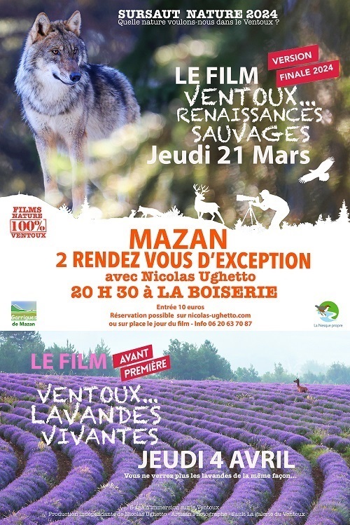 Nos partenaires : Les Chevaliers de l'onde - La Photo dans le cadre - MIL - Les Amis de la Nesque - Recycl'eau - Loisirs & Environnement - FRECHET Videos du Ventoux - Les Amis du Vieux Velleron - Les silences du Ventoux - Relier - CINEA 84 - Pierre Sêche - Les Sorgues Vertes - FNE PACA - Les Carnets du Ventoux - FNE 84 - Pour le Parc du Ventoux - SMBS - SSFV - GACR Archéo-comtat - Rando-Oiseaux - Source de culture - Philippe Jean Coulomb - LPO Buoux - AFBEB - Garrigues Mazan et Lègue Carpentras - Comité écologique Carpentras Ventoux - Agence de l'eau - Société des Naturalistes du Pays d'Apt