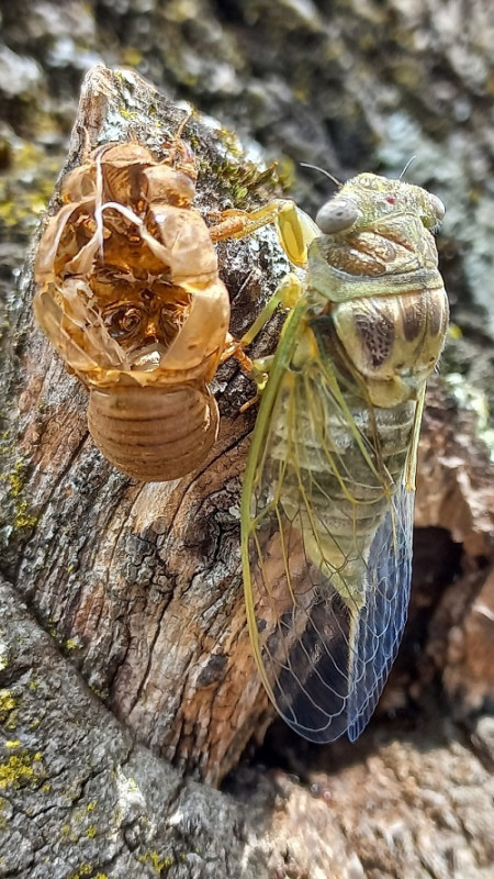 Samedi aprés midi 13 juillet à St Didier, Alain Lebret a photographié une Cigale qui sèche ses ailes au soleil. Elle vient tout juste de sortir de sa chrysalide!