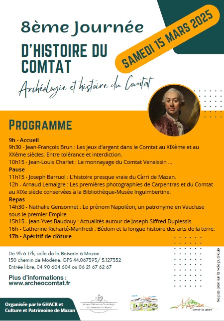 La 8ème Journée d'Histoire du Comtat se tiendra à Mazan le 15 mars prochain