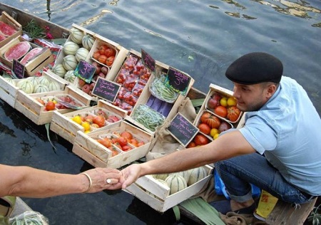 Autrefois, les pêcheurs l'islois descendaient le dimanche de leurs cabanons situés en amont du village, pour y vendre leurs produits depuis leurs fameuses embarcations, les Nego-Chin. En ce dimanche matin, le marché flottant renoue avec cette tradition l'isloise d'ancien temps.