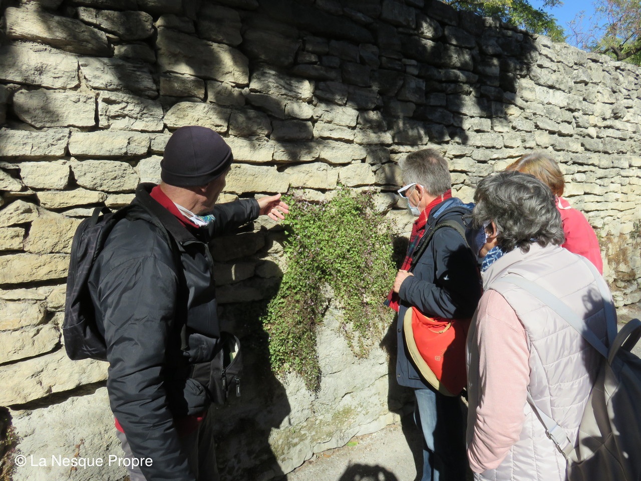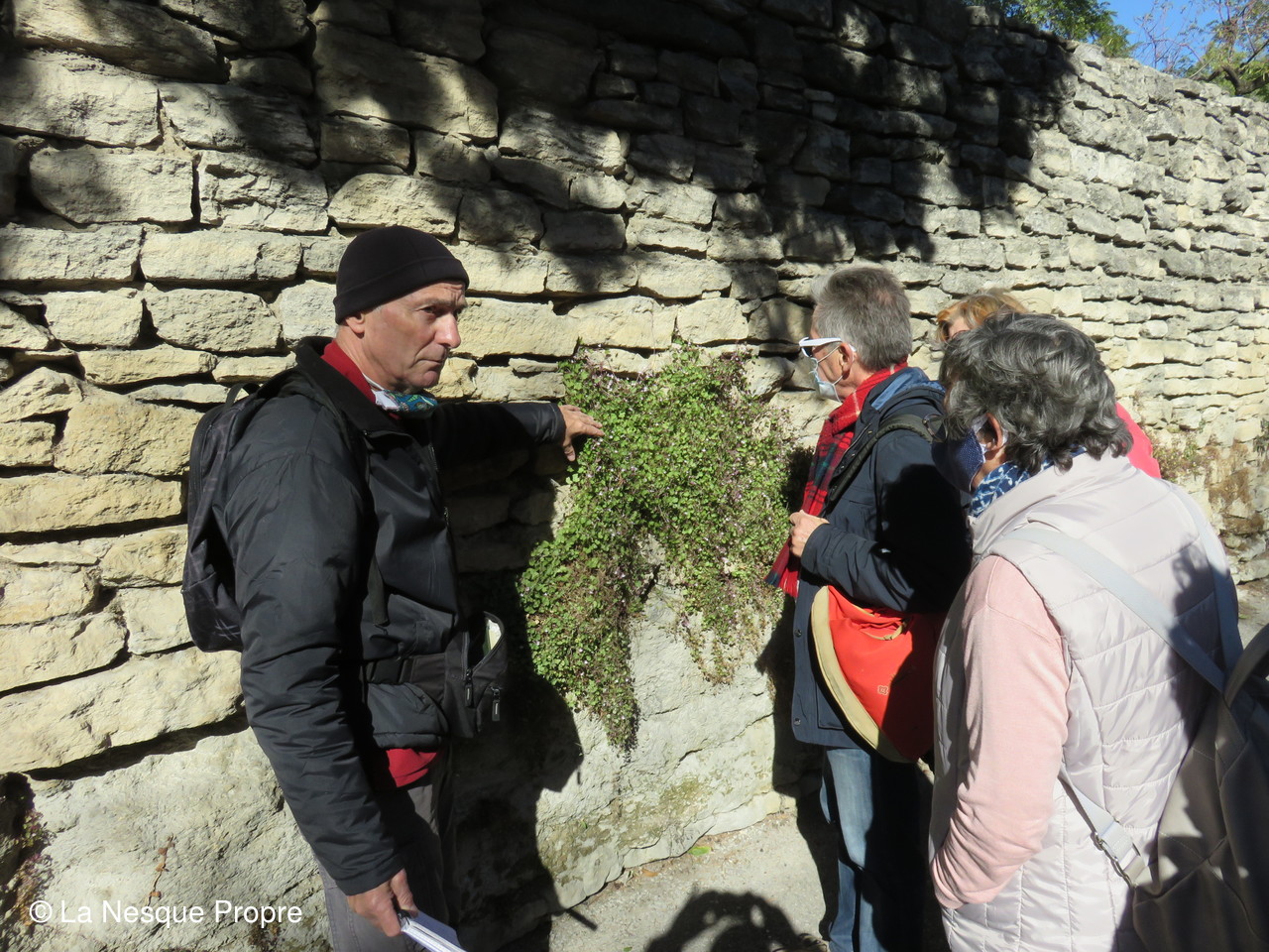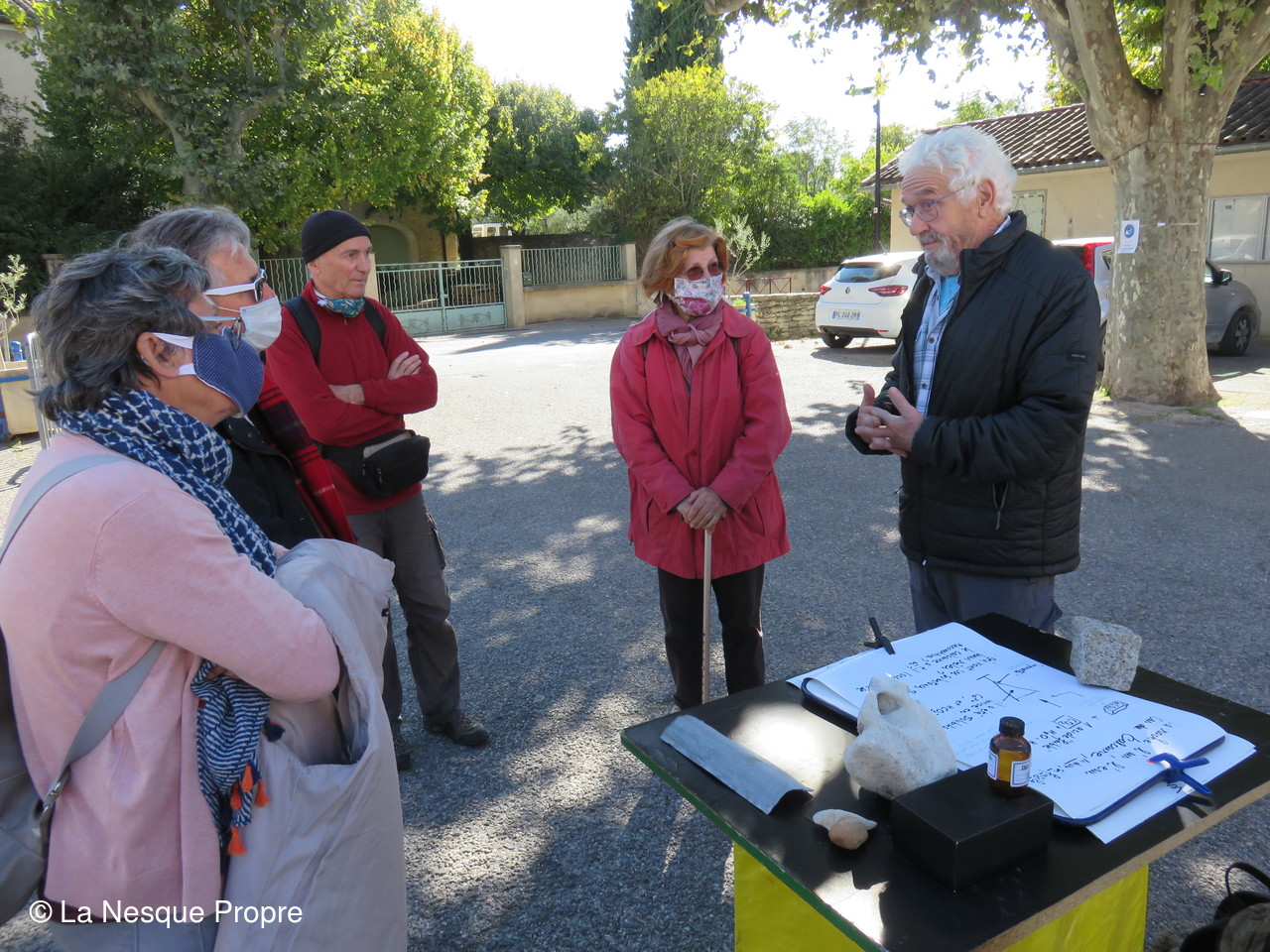 Avec Albin Auge et Georges Ughetto, 8 participants ont passé l'aprés midi à Lagnes à la découverte de la botanique, de la la géologie, des paysages des Monts du Vaucluse autour des sources de Charlain et de la folie en se baladant le long du canal et autour du village.