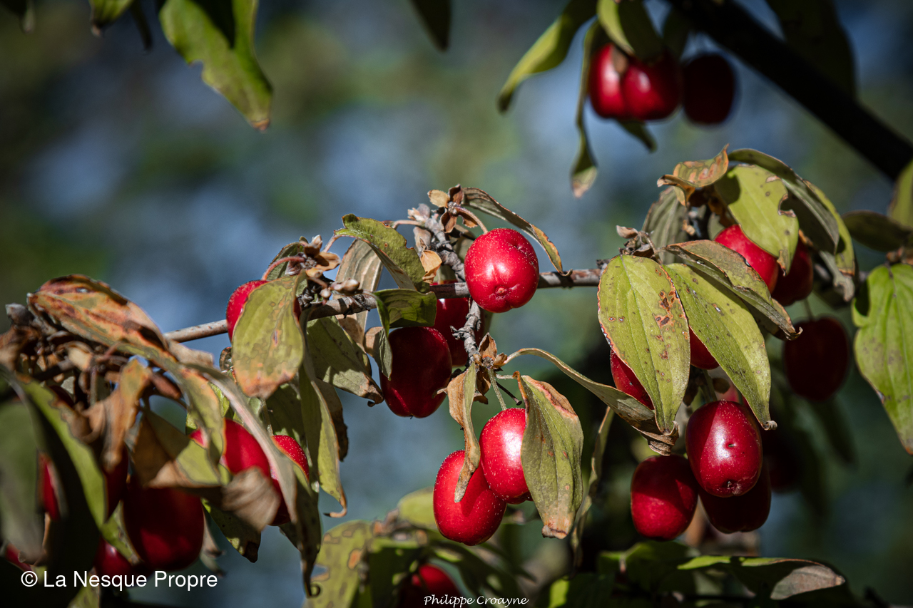 L’automne est un moment essentiel de l’année pour découvrir la nature parée d’écorces, de feuilles et de fruits multicolores, particulièrement avec les baies et les drupes sauvages, noires, rouges, oranges… C’était le thème de notre sortie à la Gabelle de Monieux, samedi 30 septembre 2023.