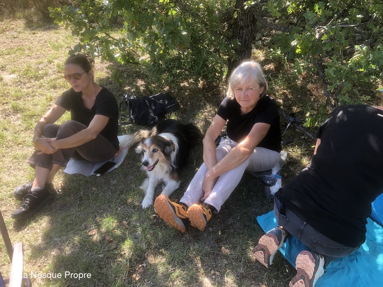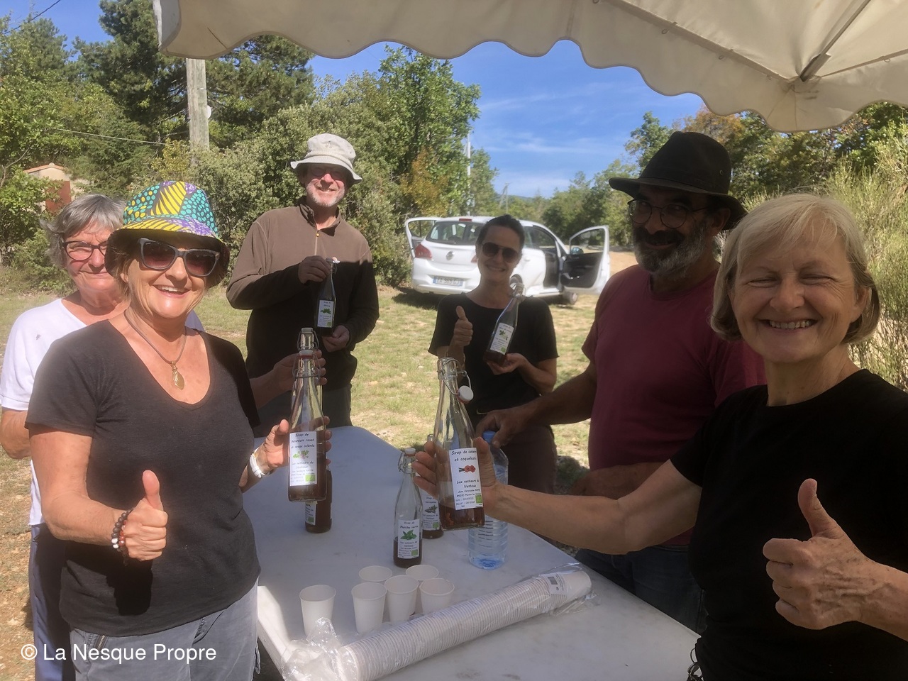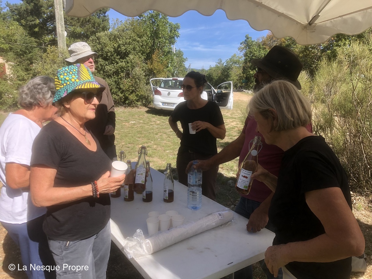 A midi trente, Jean Christophe nous a fait déguster ses sirops à base de plantes bio. Nous nous sommes reposés à l’ombre d’un Chêne, avec un panorama à 360°, du Ventoux au rocher du Cire.