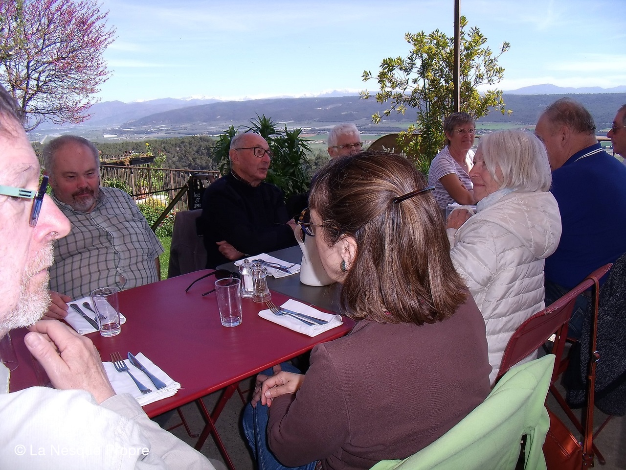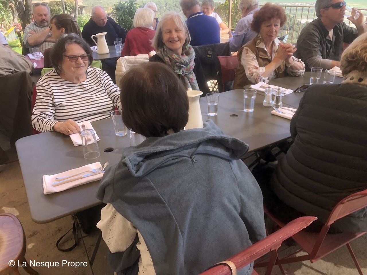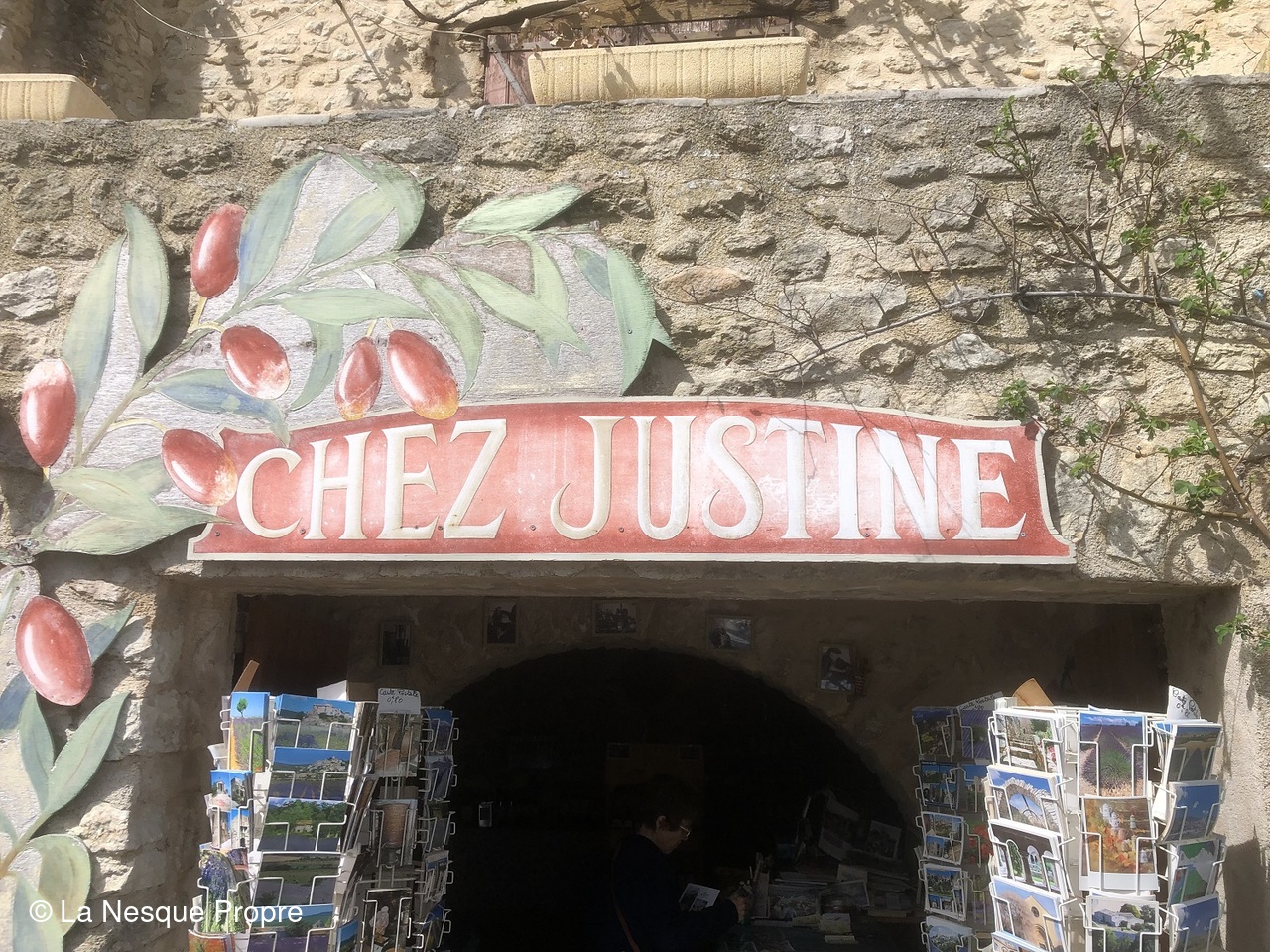Déjeuner sur la terrasse panoramique du bistrot de pays. Puis, en début d’après midi, on a fait des emplettes dans la boutique d’Evelyne Masse « chez Justine ».