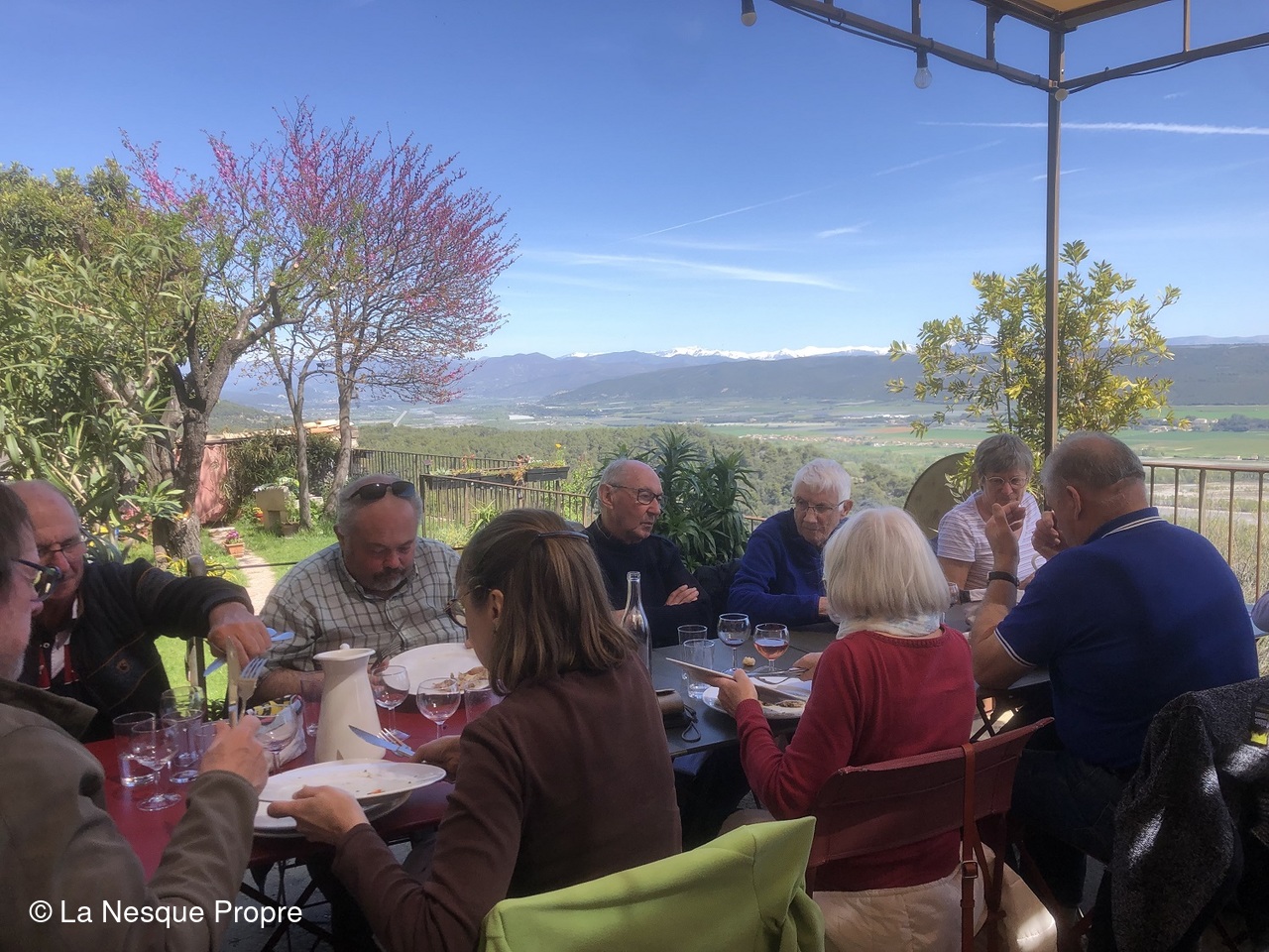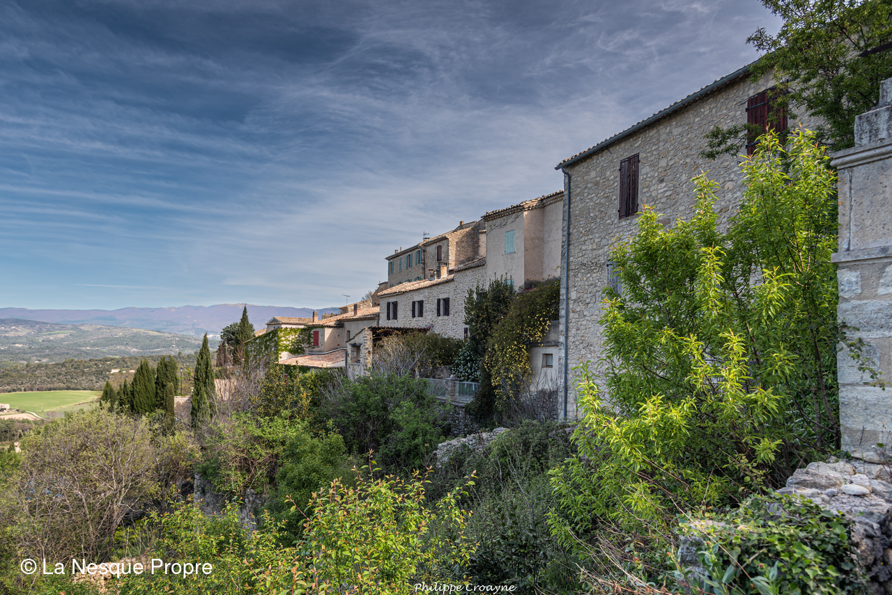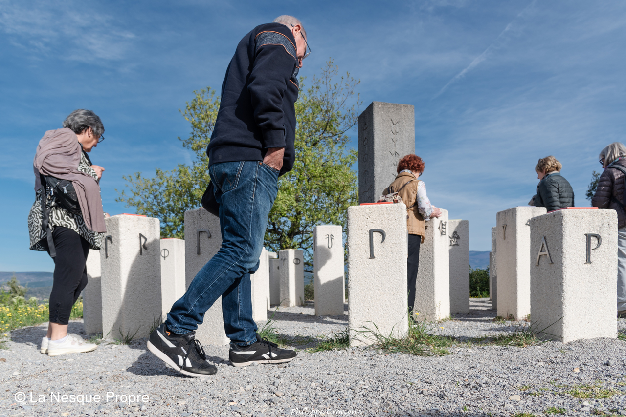 A travers le chemin des écritures, on a exploré un lieu chargé d’histoire, cher à Jean Giono. Tout est baigné de soleil et de silence. Au dessus de nous, un milan noir, tout juste arrivé d’Afrique tropicale, nous a offerts un numéro de vol plané dans la brise matinale. Ici, le point de vue est imprenable. Les paysages sont sublimes, particulièrement bigarrés. Au loin, à 360°, la Durance serpente avec « ses tresses », le Mercantour, le Luberon, la Montagne de Lure, le plateau de Valensole, le Mont Denier, le Buech, la Bléone…