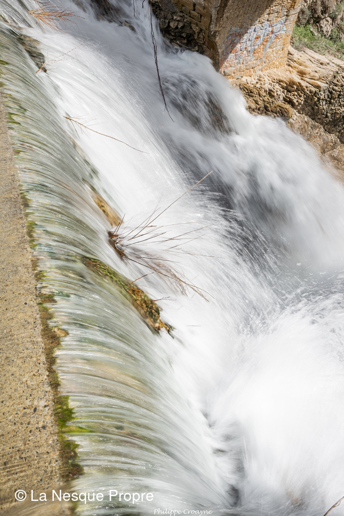 Direction côté Nord. La rivière du Lauzon coule en grandes eaux. La cascade de Monessargues est singulière. Sur la rive droite, Le moulin de la Cascade s’est adapté aux nouvelles techniques. Il presse les olives de la variété « Aglandeau ». Elles sont récoltées mures. 8000 oliviers en culture bio produisent une huile d’olive douce et fruitée. Le moulin perpétue le savoir faire des hommes depuis le XVIème siècle.