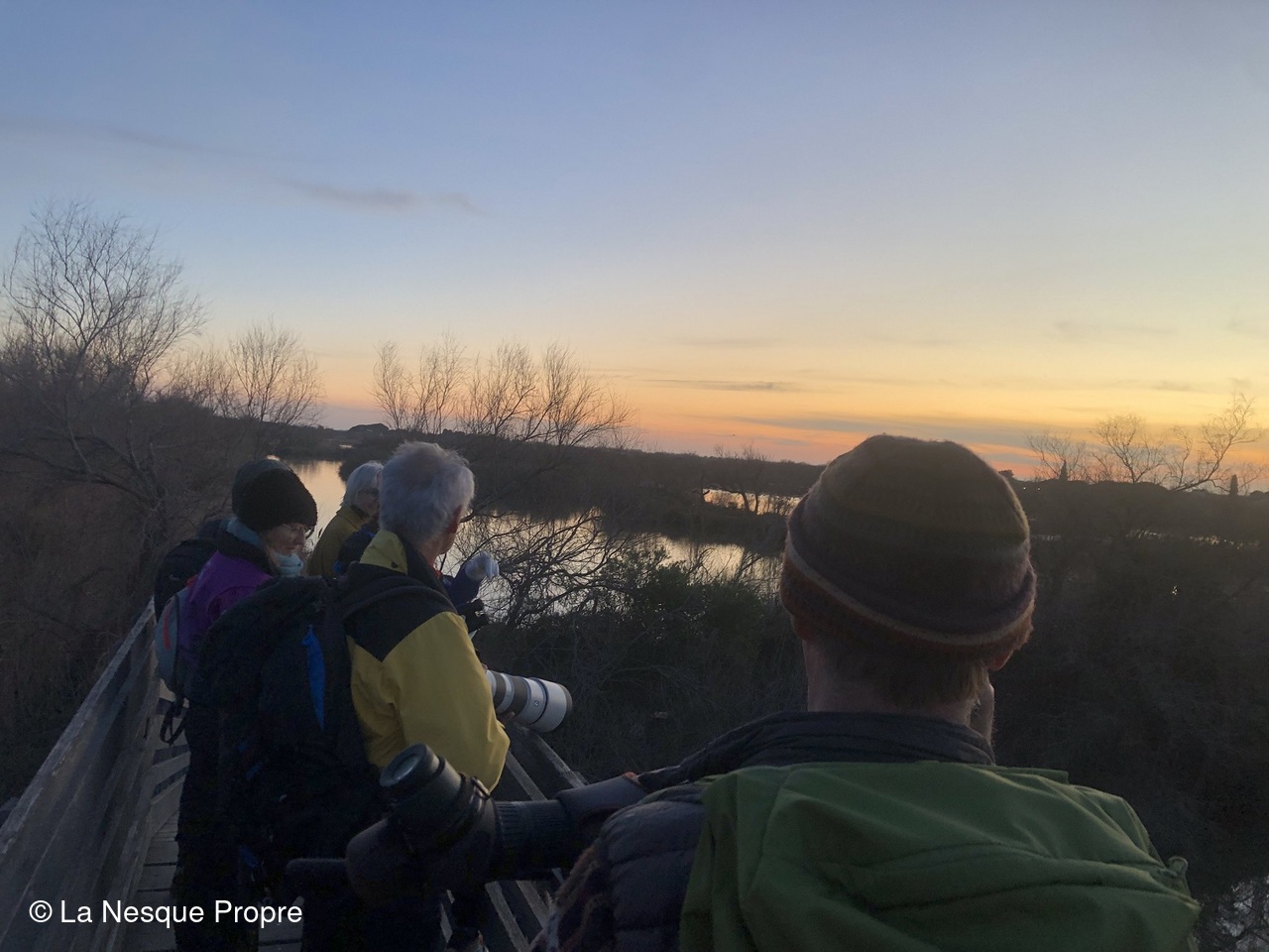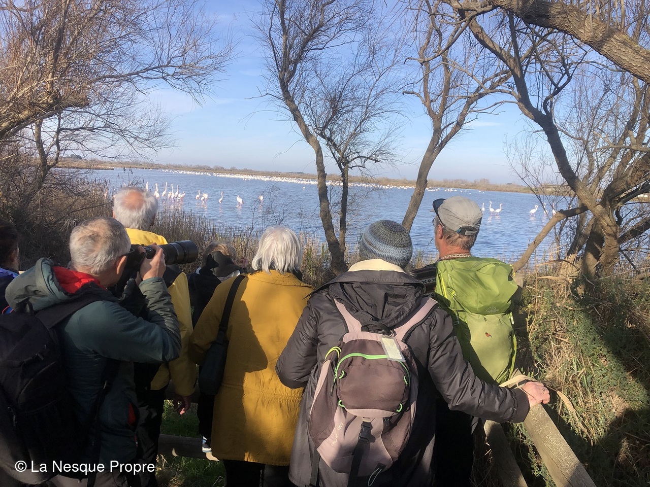 Samedi 8 février 2025, la Nesque propre a passé une journée aux Saintes Maries de la mer, à la découverte du Parc ornithologique de Pont de Gau. Tout est calme et paisible. Le ciel est voilé. La lumière est douce. Le vent est nul.