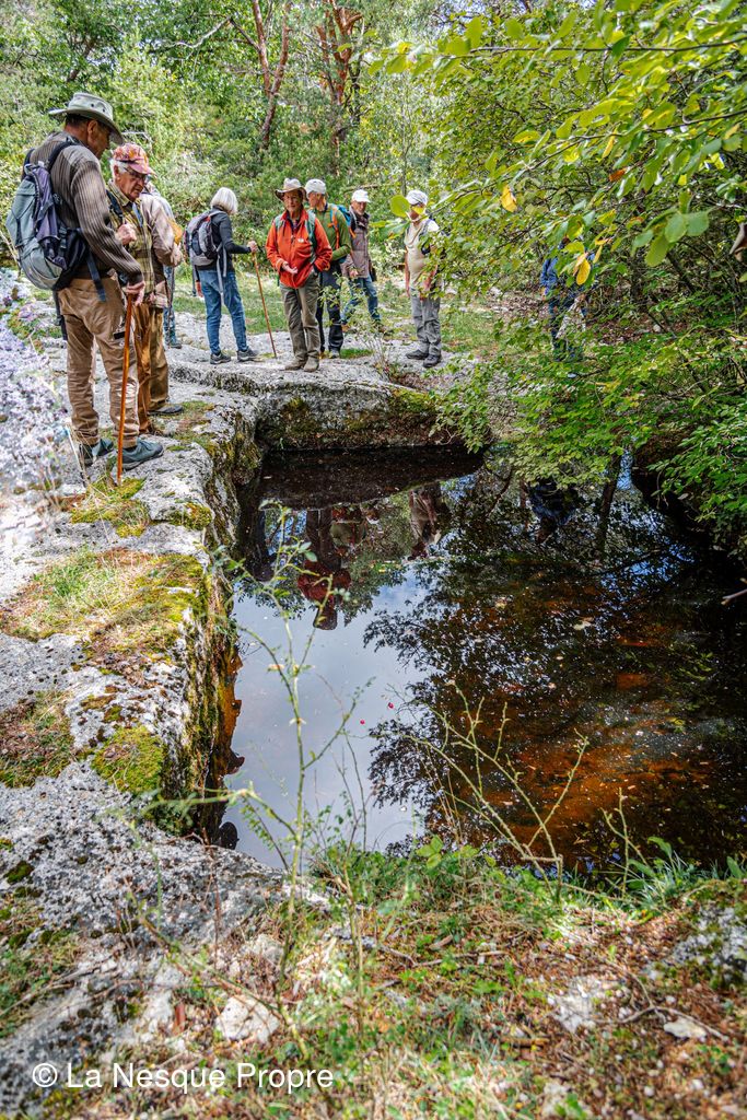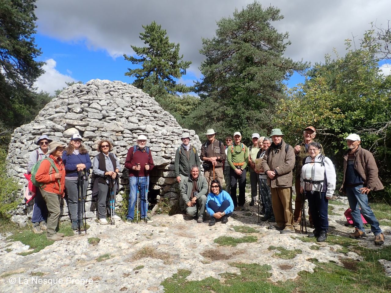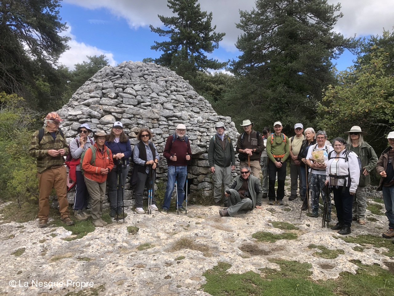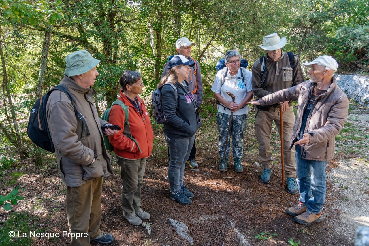 C’est au col de la LIguière à 998 m que La Nesque Propre et ses 20 participants se retrouvent, autour de Marie-Thérèse Ziano de la société des Naturaliste du pays d’Apt, pour une longue découverte des conifères et des aiguiers du plateau d’Albion.