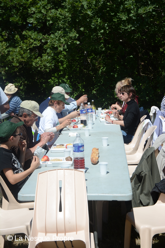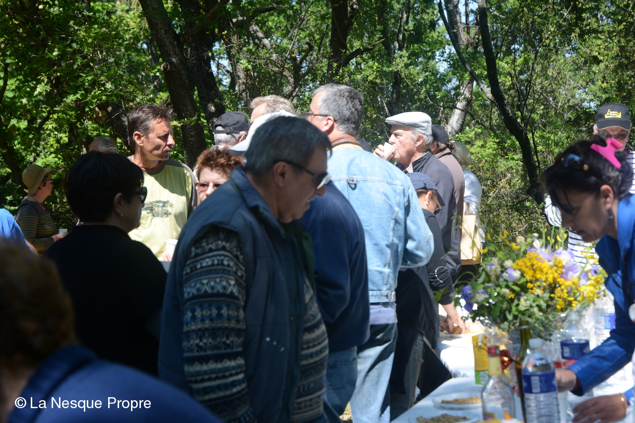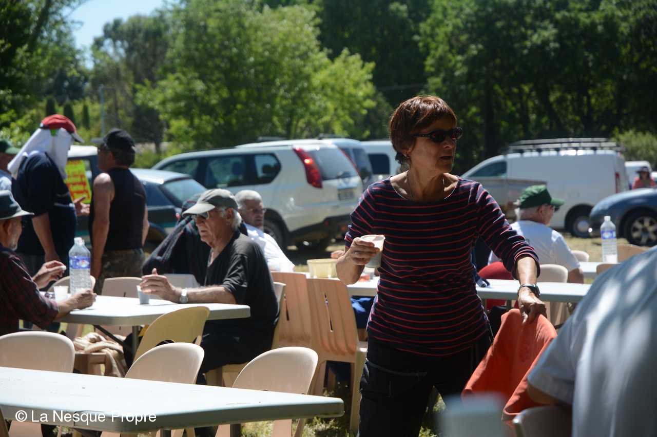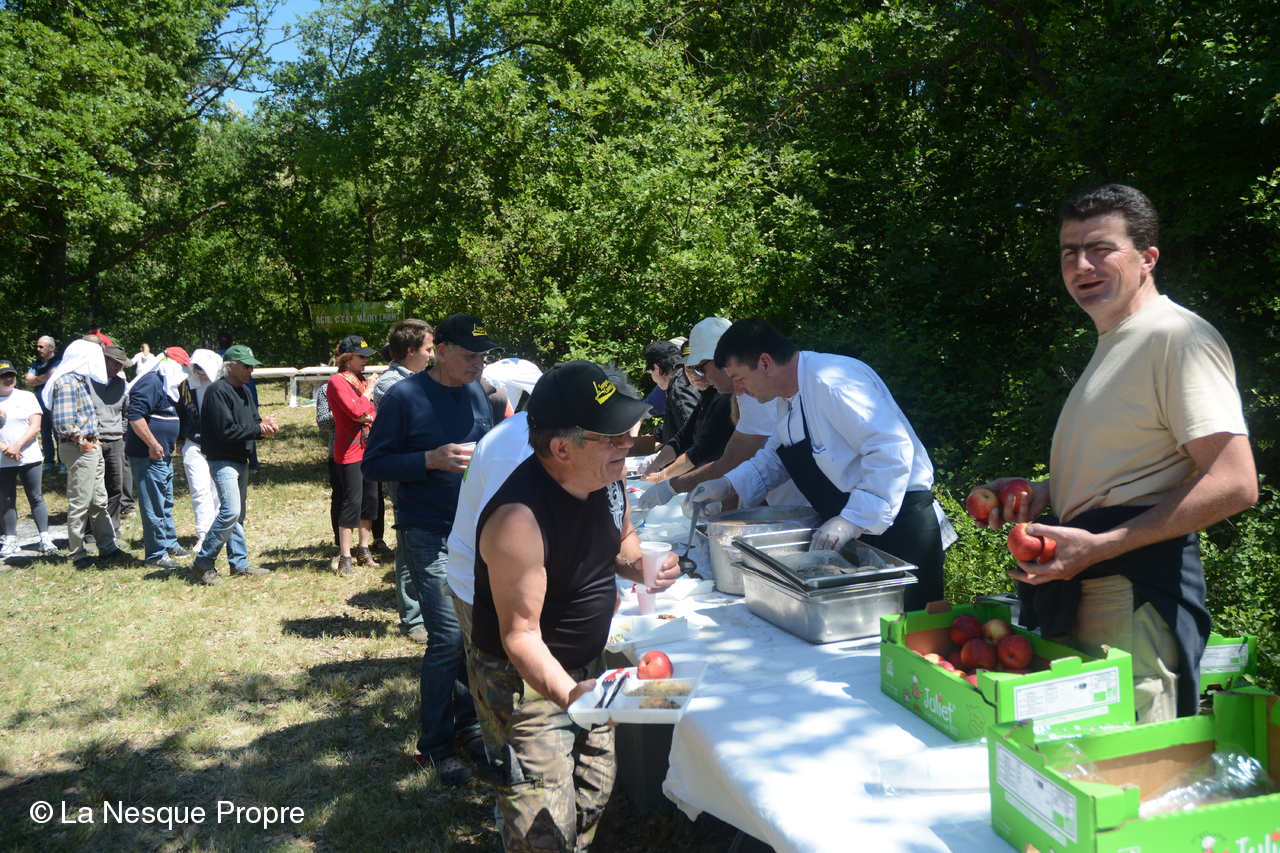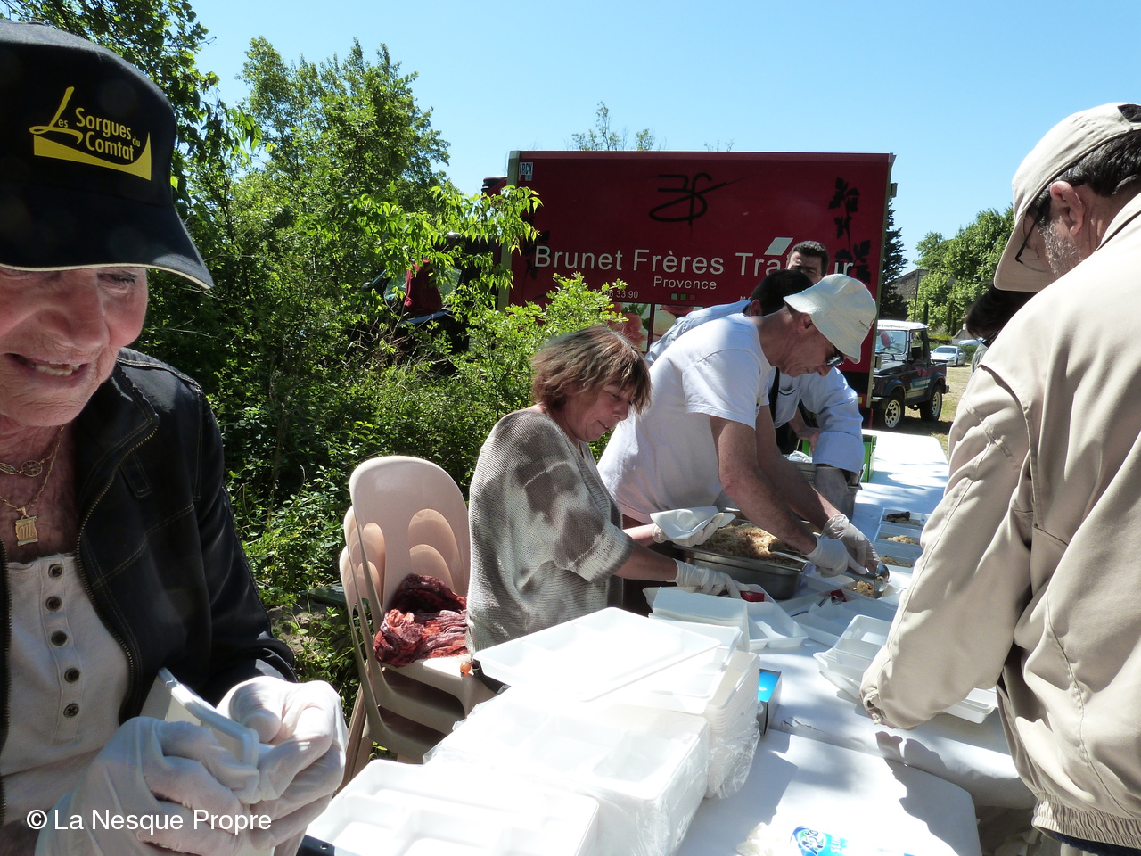 C'est la pause déjeuner " champêtre " à St Barth avec une ambiance du tonnerre autour de l'apéro offert par Intermarché de pernes les fontaines suivi d'un délicieux repas préparé par la maison Brunet Traiteur, avec épaule d'agneau confite accompagnée de riz aux quatre légumes , fromage, pomme juliette bio de la ferme Carle Berger d'Althen les paluds, le café , le tout arrosé de côtes du Ventoux rouge, rosé et blanc du domaine St Sauveur à Aubignan.