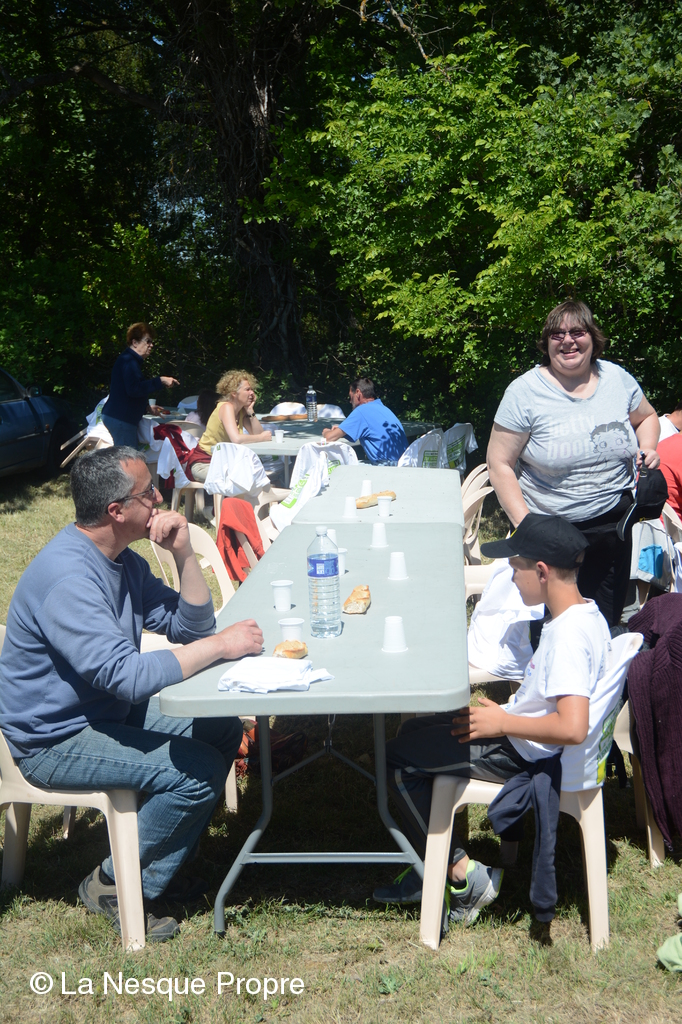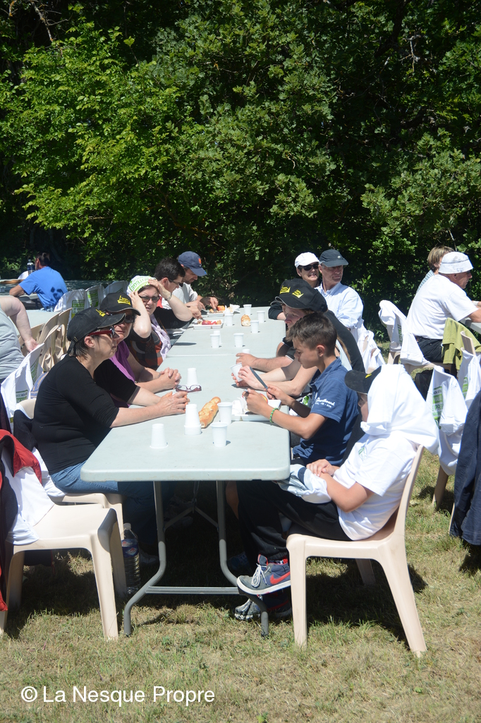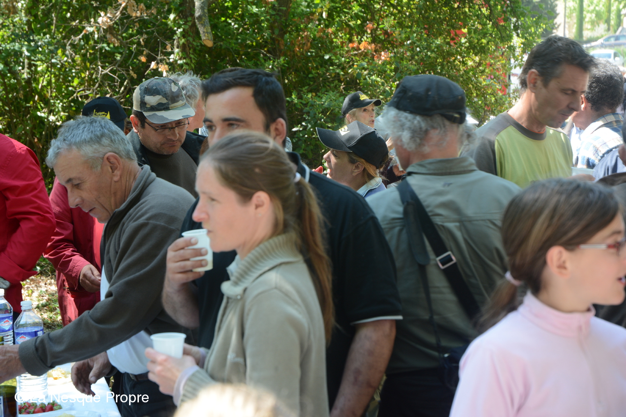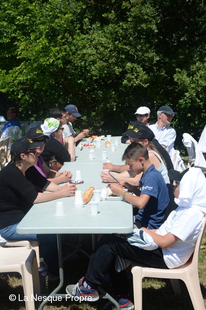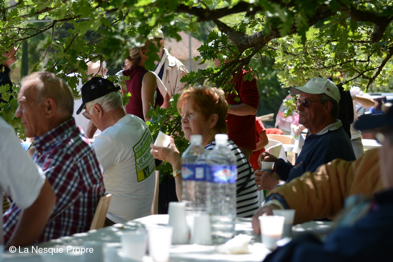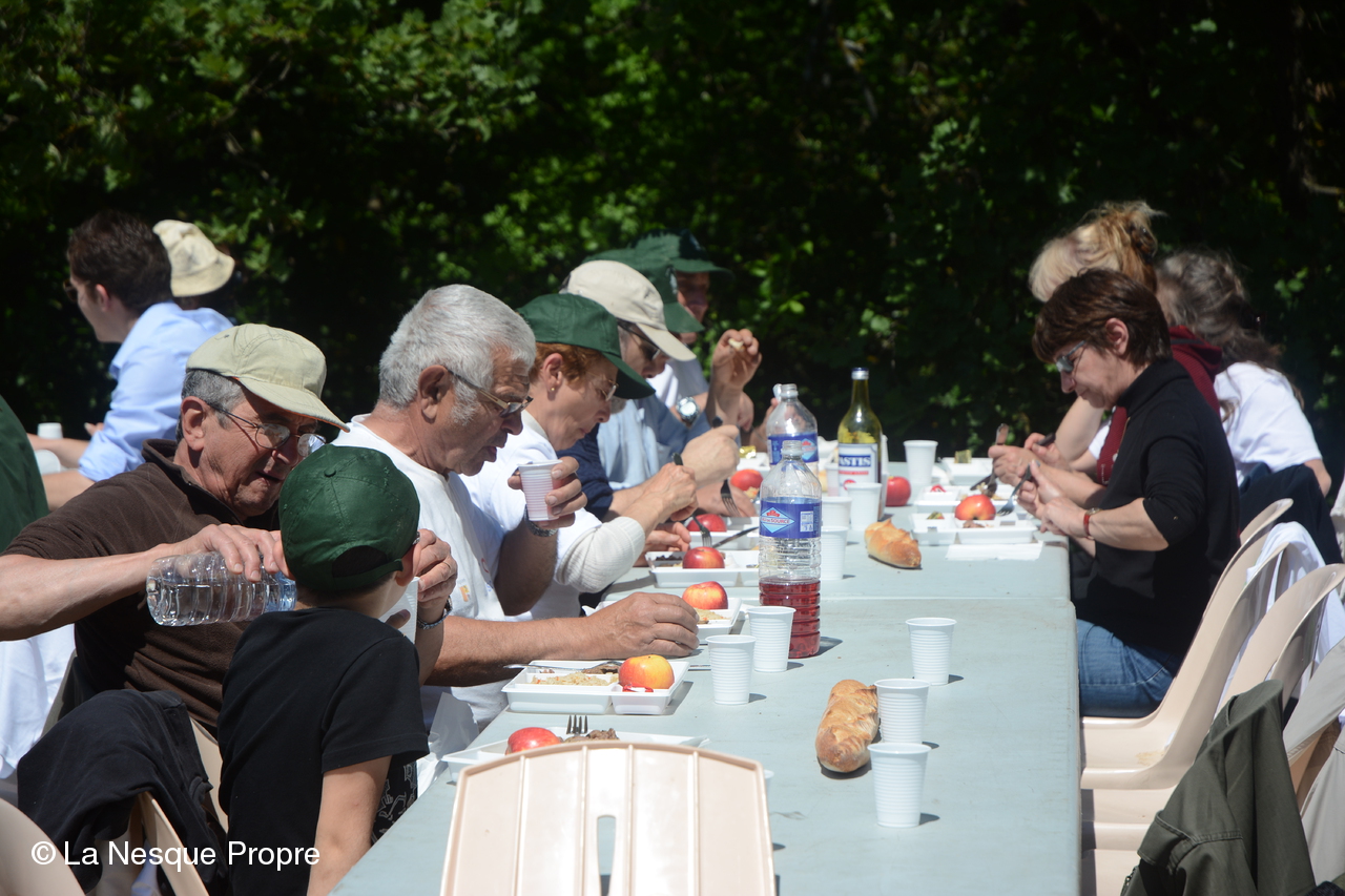 C'est la pause déjeuner " champêtre " à St Barth avec une ambiance du tonnerre autour de l'apéro offert par Intermarché de pernes les fontaines suivi d'un délicieux repas préparé par la maison Brunet Traiteur, avec épaule d'agneau confite accompagnée de riz aux quatre légumes , fromage, pomme juliette bio de la ferme Carle Berger d'Althen les paluds, le café , le tout arrosé de côtes du Ventoux rouge, rosé et blanc du domaine St Sauveur à Aubignan.