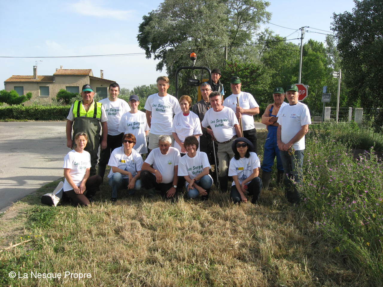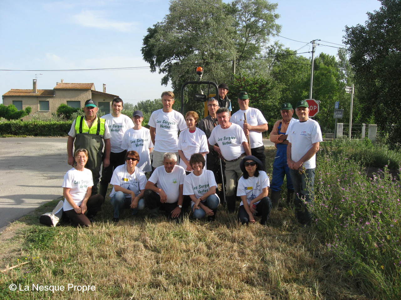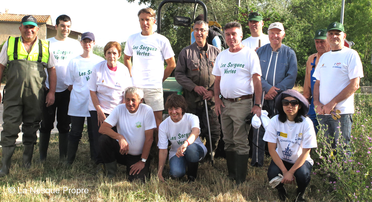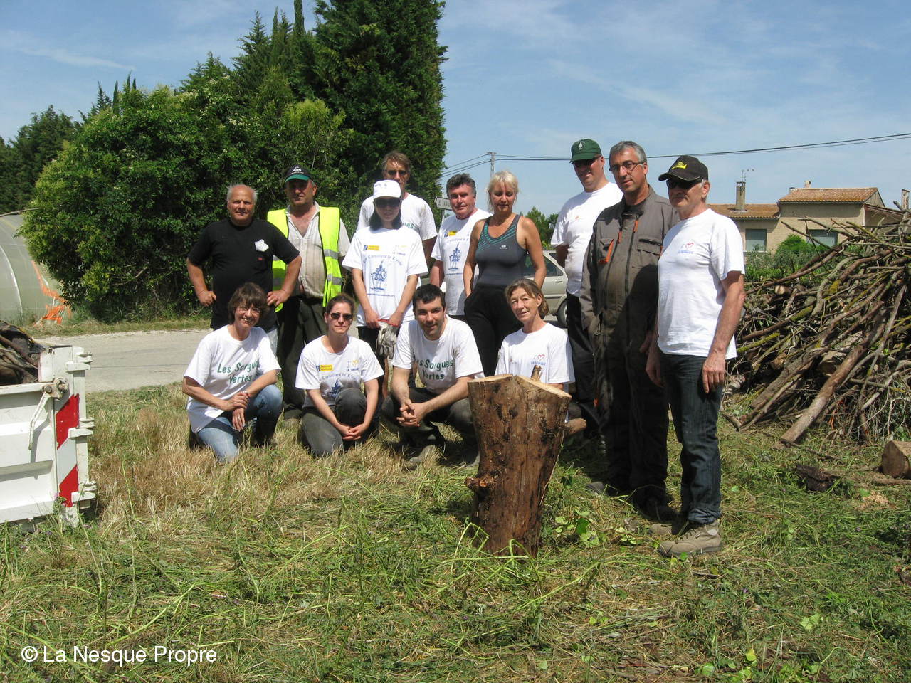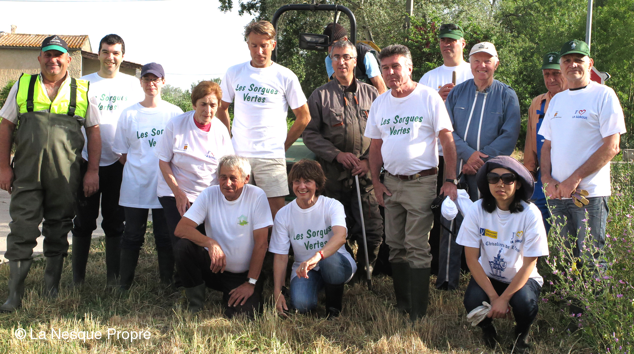 La Nesque Propre et les Sorgues vertes avec une vingtaine de participants, en charge de l'amont et aval du pont de Capely à Pernes, n'ont pas eu peur de mouiller la chemise.