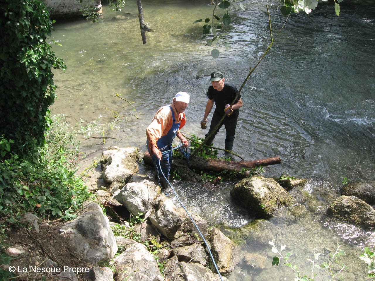 Nouvelle et remarquable opération des Chevaliers de l'onde pour préserver un patrimoine précieux : La Sorgue; 35 chantiers de nettoyage du lit et des berges de la Sorgue, avec l'appui exemplaire d' un bon millier de bénévoles répartis depuis Fontaine de Vaucluse jusqu'aux portes d'Avignon sur un itinéraire de 200 km de bras et canaux qui filent vers le Rhône.