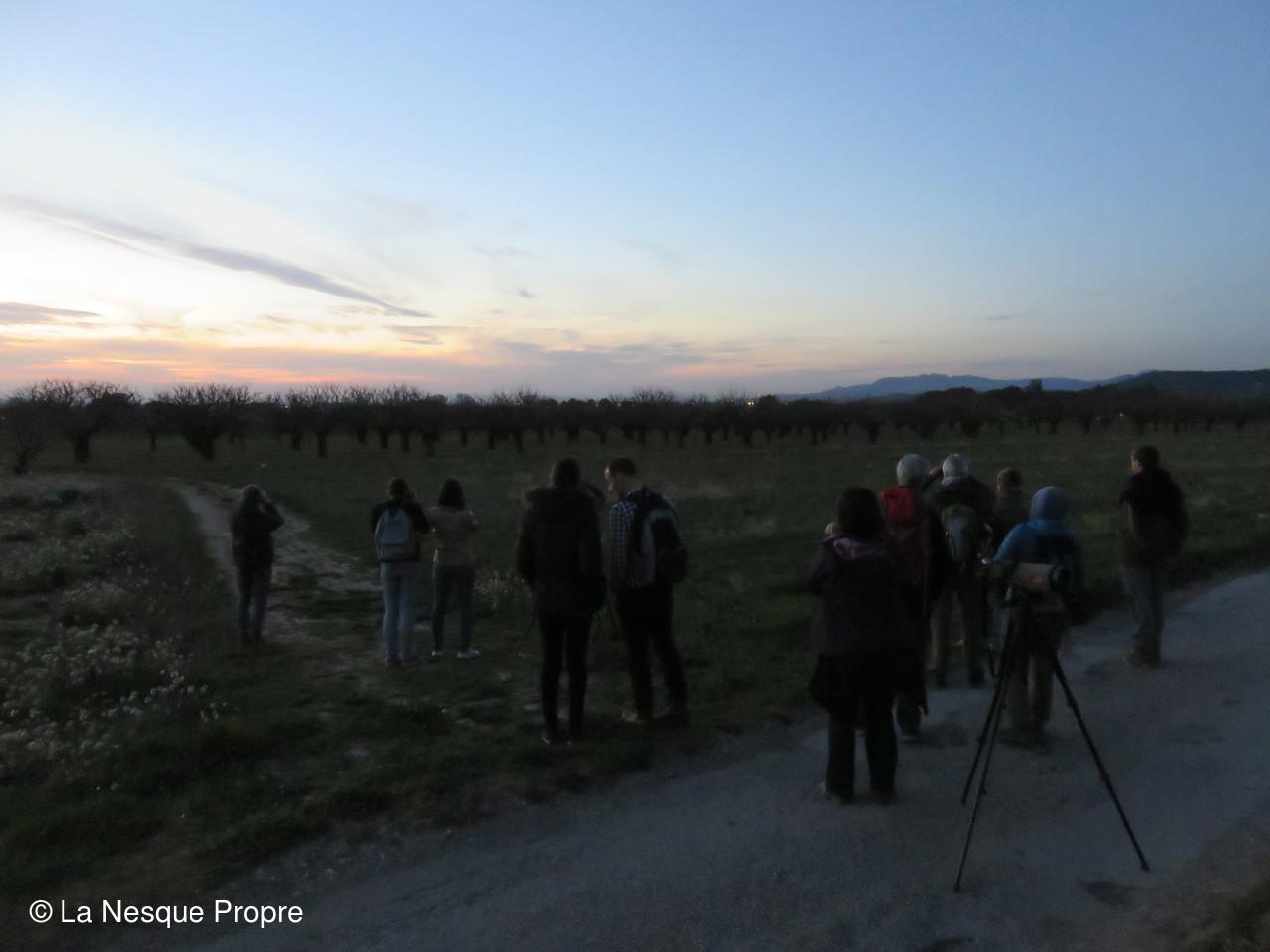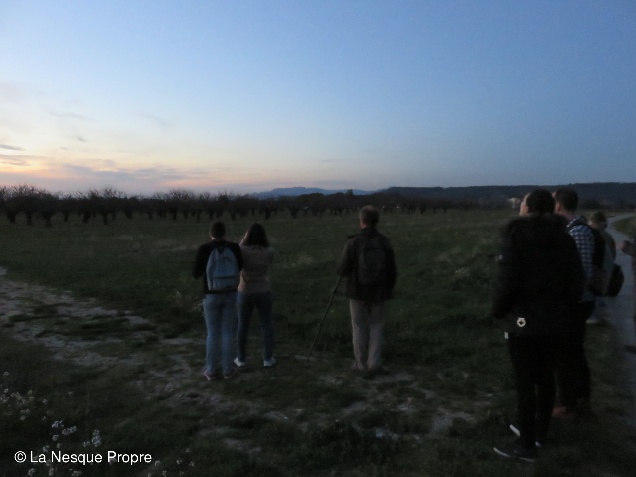 11 Mars 2017, 12 ème Nuit de la Chouette. Dans le cadre des actions menées conjointement avec le Conseil départemental de Vaucluse pour faire découvrir les espaces naturels sensibles du Département, 15 participants depuis le Défend à Venasque jusqu' à St Roch à Pernes, à l'affut du Grand Duc, de la Chouette Hulotte, de la Chevêche d'athéna , sous l'égide de Dimitri Marguerat , guide naturaliste.