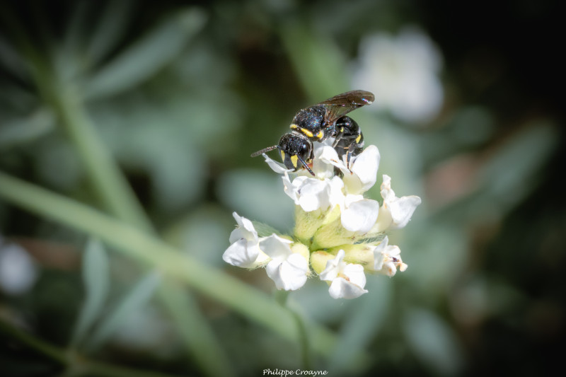 Après la présentation des papillons et du jardin, nous abordons le sujet des abeilles à travers les nichoirs à insectes conçus par Elie DUNAND et le travail de protection de l'abeille noire de Provence, une espèce menacée d'abeille de notre région et dont un rucher est présent au jardin du Barroux. Elie nous montre le nichoir à insectes, boite ouverte d'un coté et contenant des tubes de différents diamètres pour permettre aux abeilles sauvages de pondre et se reproduire. Les abeilles sauvages représentent l'immense majorité des espèces d'abeilles. Elles sont solitaires et 20% d'entre elles sont maçonnes, habitant dans les trous des maisons, des arbres morts. Pour se reproduire, l'abeille prend le nectar et le pollen dans les fleurs, va dans le tube adapté à sa taille, vibre pour faire tomber le pollen de ses poils, pond, recule, va chercher de la boue pour faire une cloison puis recommence quelques minutes plus tard. Elle peut ainsi pondre 30 à 50 œufs. Une fois son travail accompli, l'abeille meurt, les œufs vont éclore et les larves se nourrir dans leur alvéole jusqu'au printemps suivant. Les nichoirs à abeilles permettent d'examiner les œufs et de déterminer en particulier le nombre d'espèces d'abeille sauvage présentes sur un territoire donné. C'est une donnée importante pour ces espèces assez mal connues et étudiées.